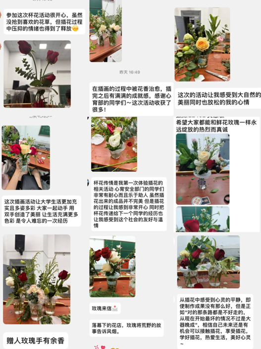 在活动结束之际,参与活动的同学们将自己精心制作的杯花包装好,并在卡片上写下了祝福的话语。这些杯花作为特别的礼物分发给2024级新生,为同学们留下了珍贵的回忆。许多同学通过心灵树洞官方QQ号反馈了对活动的期待和建议。