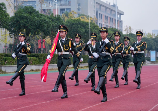 随后,太阳成集团tyc122cc“戎光”宣讲团的团长章鑫同学以《展现青春作为,彰显青春风采,贡献青春力量》为主题进行国旗下讲话。他围绕自己的从军经历、训练故事和荣誉勋章三个方面,用自己的亲身经历告诉同学们要充分利用好每天的时间,不断充实自己,遇到挫折不要轻言放弃,更强调要积累经验,从而使专业技能为自己所用。