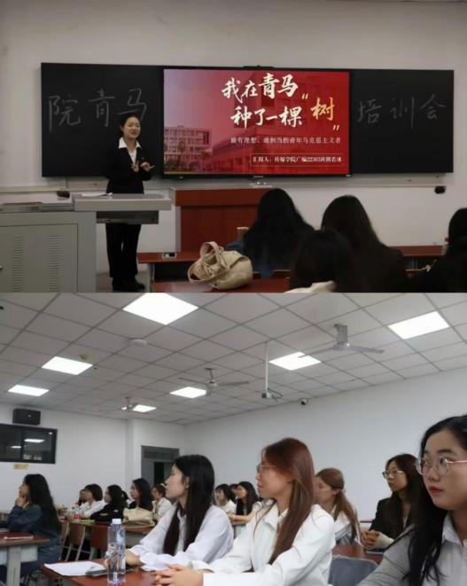 本次培训会由青马工程培训和主题团会两部分组成。在青马工程培训环节,熊若冰分享了她在省青马班学习期间积累的实践案例与成长感悟。她谈到,青年骨干应扎根理论学习,在实践中拓宽视野、锤炼能力。在随后进行的主题团会中,熊若冰以“铭记辉煌历史,强国复兴有我”为题,结合抗日战争胜利80周年,系统讲述抗战历史与先烈事迹,鼓励同学们传承抗战精神、践行使命担当,为实现中华民族伟大复兴的中国梦贡献力量。