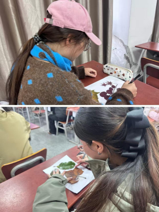 活动伊始,活动负责人简要说明安全须知与创作技巧。同学们专注运用树叶的天然形态、色泽与纹理,进行剪裁、拼合与粘贴,将抽象构思转化为具体画面。最终完成的拼贴作品题材丰富、构思各异,均较好地体现了自然材料与艺术创意的结合。