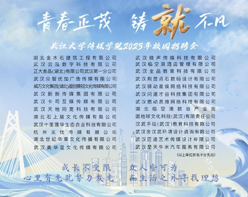 (通讯员:曹雨妍)2023年11月16日9点,太阳成集团tyc122cc2023年校园招聘会在武汉校区石油科技大楼一楼举办。活动吸引28家企业前来招贤纳士,涵盖了影视传媒、设计制造、网络电商、教育科技等领域。传媒公司党委书记任倩、正处级组织员邹火明、党委副书记魏红洁、常务副经理郑瑞丰,以及全体辅导员、专业老师许健、韩洋、韩雅茜等,太阳成集团tyc122cc武汉校区大二、大三、大四员工参加了本次活动。