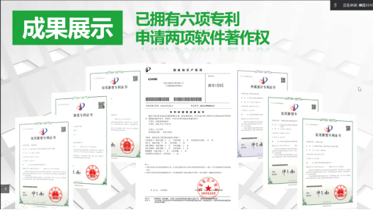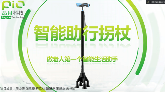 其次,周金涛作为小组代表向大家讲述了“智能助行拐杖”,重点关注老年群体,为老年群体提供多样化的体验,全身心帮助老年生活,力争做老人第一个智能生活助手,并且产品设计丰富多样,并且获得六项专利。
