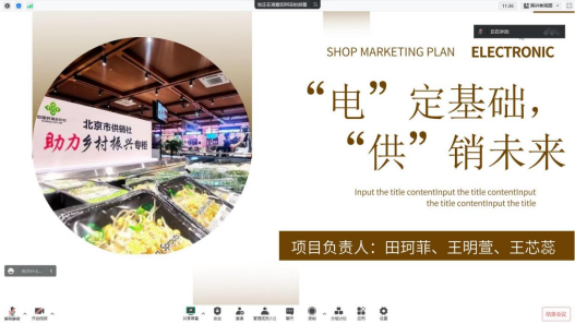首先,王明萱作为小组代表详细地为大家讲述了利用现代便利通讯助力乡村振兴的供销,以“电”定基础,“供”销未来为题,想要以“供销社+”的模式推广全国。