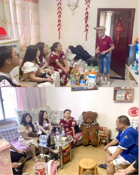 到达一名受访员工家中,狭小的居住环境便映入眼帘,一室一厅的房间里,居住着员工年迈奶奶还有父亲。辅导员教师向家长反馈了员工在校表现情况,并送上了慰问品和慰问金,员工父亲激动的说:“老师们,谢谢你们的照顾,我没什么文化,我小学毕业,又一身病,不会说什么话,感谢老师们的关心和爱护。” “您不用担心(学历),您培养出来了一个老员工,已经很不容易了,未来还有可能是一个研究生咧!”员工自己也说:“我的目标是考上研究生!”
