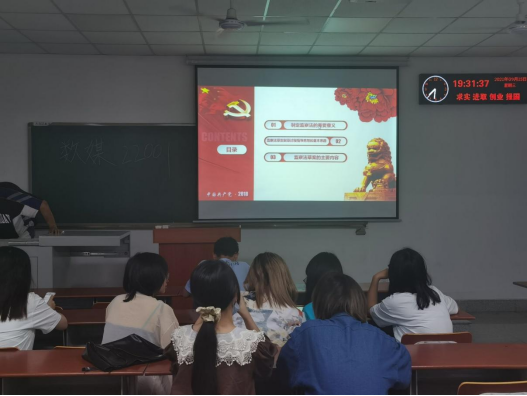 接着就习近平总书记的讲话精神,各团支部继续学习了习近平总书记考察湖北时的重要讲话精神以及习近平总书记给参加“海峡青年论坛”的台湾青年回信中所展现的精神。各支部在团会中深入学习了习近平总书记的讲话,并且由团支部带领全班同学关注时事政治,不断强化爱国主义教育意识。