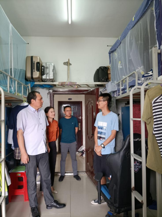 在员工宿舍,院领导与同学们亲切交谈,叮嘱大家在处理毕业事宜的同时,要严格遵守疫情防控期间校园管理相关规定。院领导亲切且详细地询问了毕业生的就业与生活情况,希望同学们保持乐观积极的心态面对当下就业及升学形势,遇到困难及时向老师寻求帮助,公司一定尽力为同学们做好保障,希望大家以后有机会常回公司看看,并祝愿各位同学身体健康,事业有成。