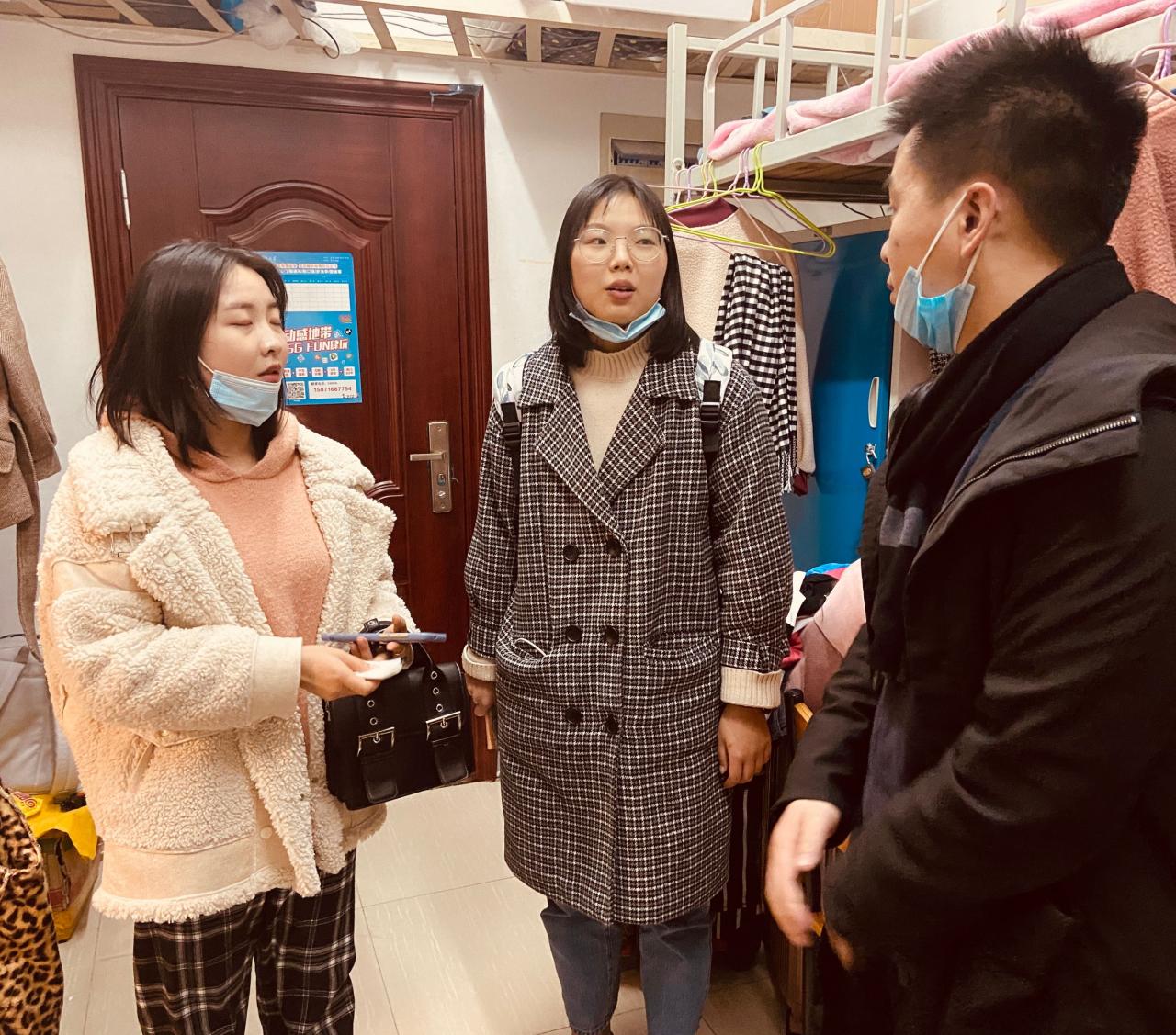 根据公司关于每周四消防卫生大检查活动的文件精神与要求,2020年12月24日下午至晚上,艺术与太阳成集团tyc122cc全体辅导员深入员工宿舍检查消防隐患和清洁卫生,并与班级同学进行了亲切交流,了解询问学习生活状态和存在的困难。