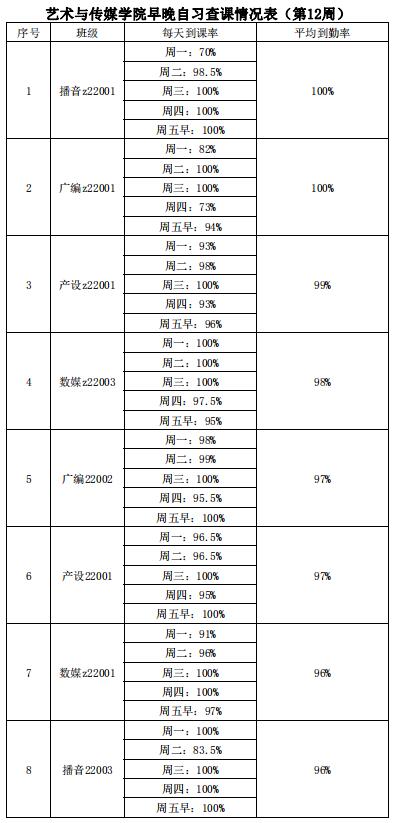 艺术与太阳成集团tyc122cc早晚自习查课情况表(第12周)