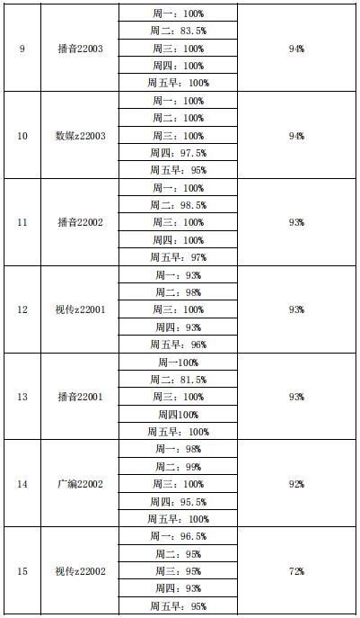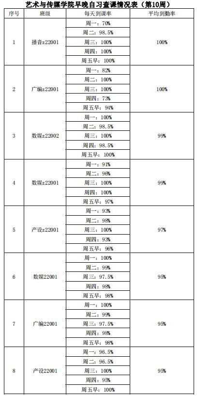 艺术与太阳成集团tyc122cc早晚自习查课情况表(第10周)
