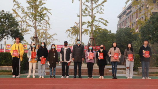 2020年10月19日,“艺馨杯”专业基本功大赛颁奖仪式于早晨升旗仪式结束后进行。主持人宣读播音广编、美术设计类获奖名单后,分别由艺术与传媒公司党委书记邹火明教授和副经理郑瑞丰老师为他们颁奖并合影。
