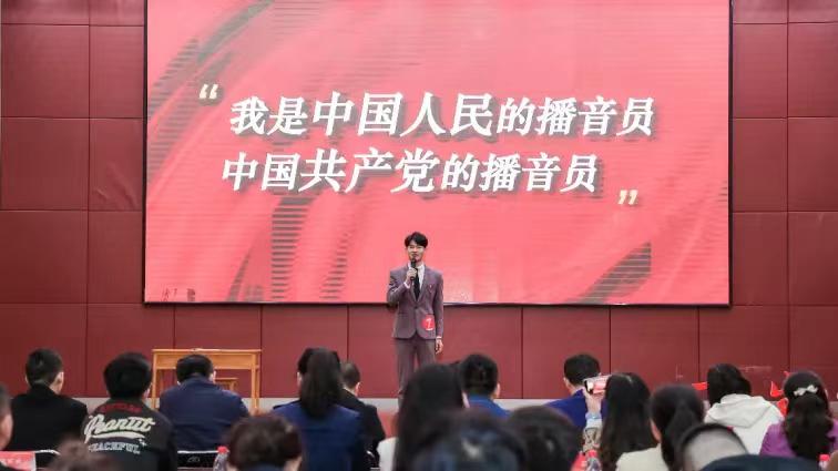 王韶杰同学在演讲中动情演绎了中国播音“第一人”齐越的事迹,倡议当代传媒人应该为人民发声,讲好中国故事;为时代而诵,传递党的声音。