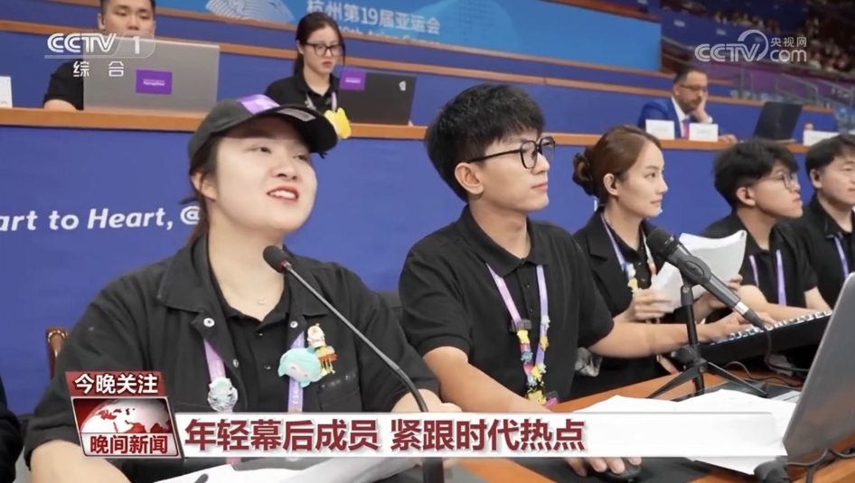 许健和方璐所在的团队是体育展示团队,也是名副其实的“氛围组”,除了播报和评论外,还包含导演、音响、摄像、视频控制、拉拉队表演、吉祥物互动等工作,一场精彩的比赛,除了运动员的努力发挥,也离不开整个体育团队的配合与呈现。本次亚运会,浙江大学紫金港校区体育展示运行团队在赛前和赛中进行了丰富的创新,相关视频被新华社、腾讯、浙江卫视、江西卫视等上千家主流媒体和自媒体账号转发,其中“亚运会赛场响起奢香夫人”、“亚运会播报员超燃播报”两个话题登上整个抖音热搜榜榜首。10月5日,中央广播电视总台CCTV-1《晚间新闻》节目对团队进行了报道。