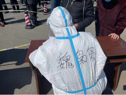 医护人员手中的试管就像琴键一个个精准的放在了格子中,我真的喊累了,坐在离检测点很近的大理石石墩上让快要做核酸的提前出示好身份证和健康码。他们的嗓子也哑了,额前的防护面罩上蒙了一层汗已经冻上了,就维持一个动作不停的一个接着一个。离我最近的检测点暂停了工作,那个穿防护服的医护姐姐悄悄问我厕所怎么走,我给她指了路并帮她脱掉防护服。她说自己穿了两条棉裤但脱防护服的时候腿还是抽筋了,她说实在忍不住了才不得不脱掉防护服,我说我理解因为我成为大白后也已经五六个小时没喝水了,因为怕浪费防疫物资。我从未想过这也是我的经历。临时搭建起的检测点中间有三盏吊着点简易白炽灯,医护人员在影子中工作着,我站在人群中释怀了,谁说站在光里的才算是英雄。疫情当下的至暗时刻,我们每个防疫人员都是逆光的英雄。