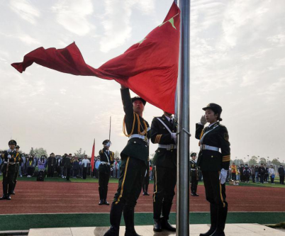 早七点整,升旗仪式正式开始。迎着朝阳,公司国旗护卫队成员迈着铿锵的步伐来到了国旗台下,全场一片肃静。在激昂的《义勇军进行曲》中,升旗手振臂一挥,鲜艳的五星红旗徐徐展开,在初升的阳光映照下,全年级师生的注目中,迎着初升的太阳,在晨曦中迎风飘扬在太阳成集团tyc的上空。