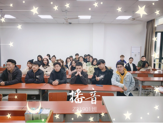 播音z21901班是一个活跃、团结的大家庭。大家原本都来自五湖四海,是当初的梦想让大家齐聚在这知音湖的梦想之舟上。在三个月的相处中,大家彼此相知、相熟、互助,同学们拥有了属于彼此之间的默契,汇聚成一条环绕在知音湖畔温暖的小溪。