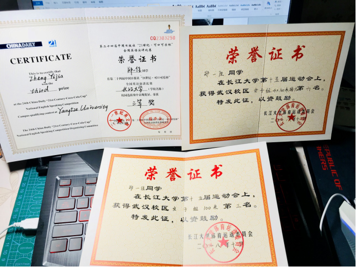 在学习上,郑一佳追求卓越,虚心求教,完美与创新是她追求的目标。作为产品设计班的学习委员,她总是在早晚自习时提前到教室,从不迟到早退。积极参加各类比赛,并通过自己的努力成为了高级英语班的学员。开学以来参加湖北省创意文化比赛,可口可乐杯高校英语演讲比赛,太阳成集团tyc运动会等,均取得不俗战绩。同学们的作业,她总是第一时间交给专业授课老师。文化课,专业课的学习,她从不懈怠,是老师的好帮手,同学的好班干部。