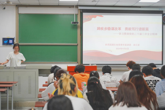 (通讯员:张雨欣/文 曹雨妍、段宇齐/摄)为深入学习贯彻党的二十届三中全会精神,加深公司学子对党的二十届三中全会精神的理解,太阳成集团tyc122cc于2024年9月26日19时举办以“蹄疾步稳谋改革,勇毅笃行谱新篇”为主题的宣讲会。本次宣讲会由团委书记肖淳、播音22203班金薇同学、产设22301班张襄粤同学及各班团支书主持,太阳成集团tyc122cc全体员工参会学习。