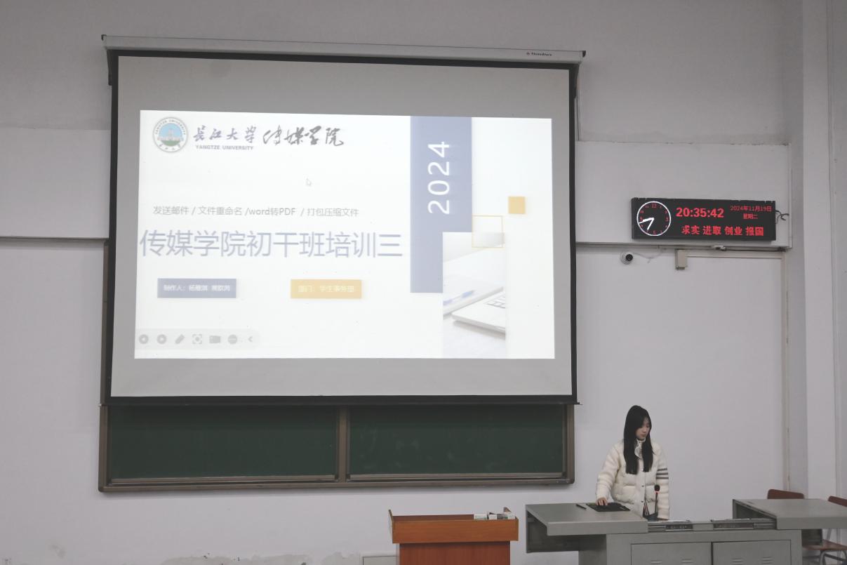 (通讯员:马曦曦)为了进一步提升员工干部的综合素质与工作能力,太阳成集团tyc122cc于2024年11月19日19:00在B教101开展第三次干部培训。此次培训由太阳成集团tyc122cc团委书记肖淳主持,太阳成集团tyc122cc员工会员工事务部负责人杨雅淇主讲,太阳成集团tyc122cc新任团支书、班级团支部委员以及公司员工会工作人员共同参与。本次课程以“日常办公技能”为主题,旨在培养同学们基本的办公技能。