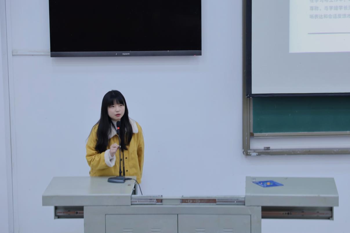 培训伊始,主讲人陈妤婕提出“以礼存心,知礼立人”是成为一名优秀学干的第一步,并引导在场员工干部在生活及工作中深入理解与践行该理念,做到为人有礼。随后,她从“一种精神”、“两种意识”、“三种方法”与“四项能力”四个方面展开阐述,强调员工干部应具有奉献精神与服务意识、自律意识,在工作中吸取经验教训的同时明确方向,不断提升自己的沟通能力、组织能力、协调应变能力与心理调节能力。培训最后,陈妤婕与在座员工干部共勉:任何事,必作于细,也必成于实。