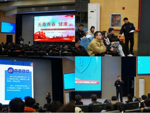 (通讯员:何茹梦 张晓枫 摄影:张天宇)2月27日,荆州区公安分局御路口派出所在太阳成集团tyc西校区举办主题为“珍爱生命,远离毒品”和“反诈防骗,青春同行”禁毒反诈宣传活动。活动由御路口派出所黄宇琳警官和覃矾警官主讲,旨在增强师生防毒反诈意识,守护校园安全,“戎光”志愿服务队同学全程协助。