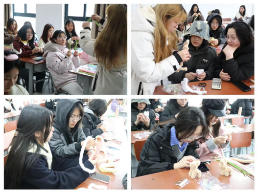 活动过程中,工作人员穿梭于课桌间,为纠结耳朵角度、花瓣层数的同学提供及时的指导。此外,活动还为参与者提供了充足的扭扭棒材料,让大家可以自由发挥创意,进行DIY创作,每一位同学都能用自己的独特视角和奇思妙想,创造出独一无二的作品。