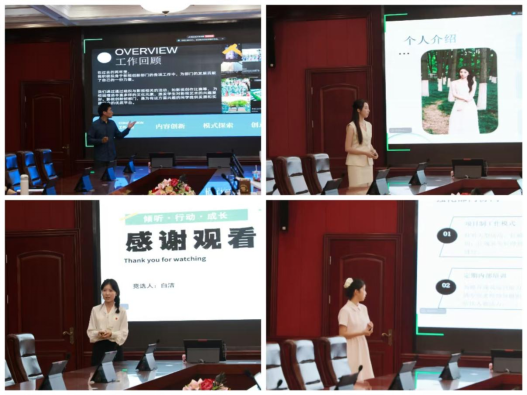 遴选面试分为答辩与提问两个环节。在答辩环节,候选人们通过精心准备的PPT展开陈述,围绕个人基本情况、工作汇报、自身优势与未来工作规划等方面进行介绍。提问环节中,团委书记肖淳与主席团成员结合候选人答辩内容进行针对性提问,问题聚焦部门管理、人际处理、工作计划等内容。面对提问,候选人结合自身经验提出解决方案,展现出扎实的综合能力与临场应变素养。