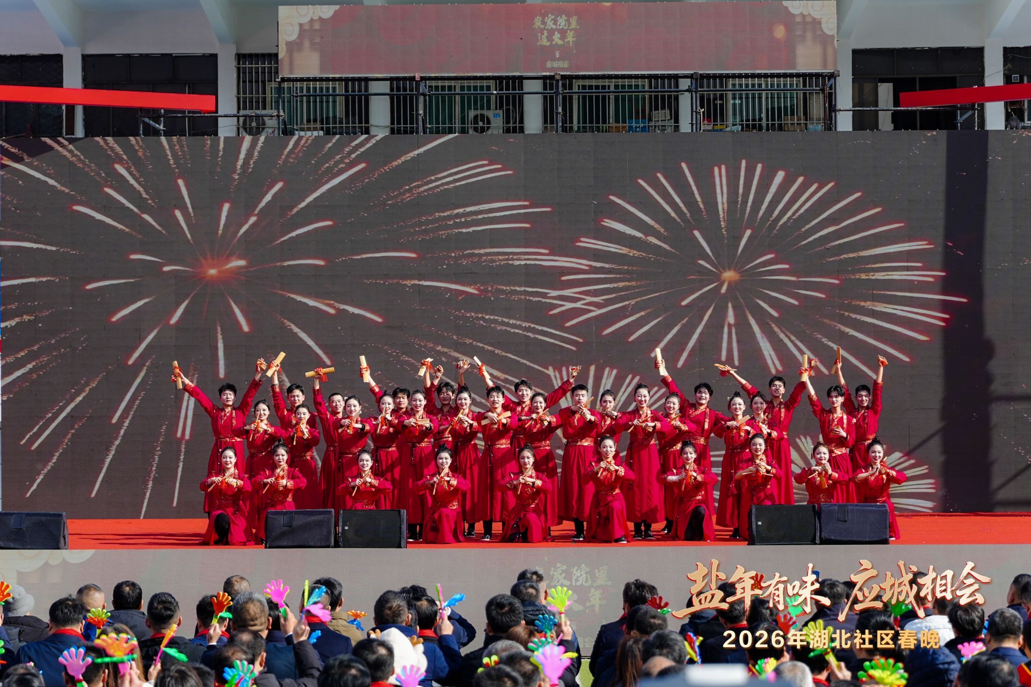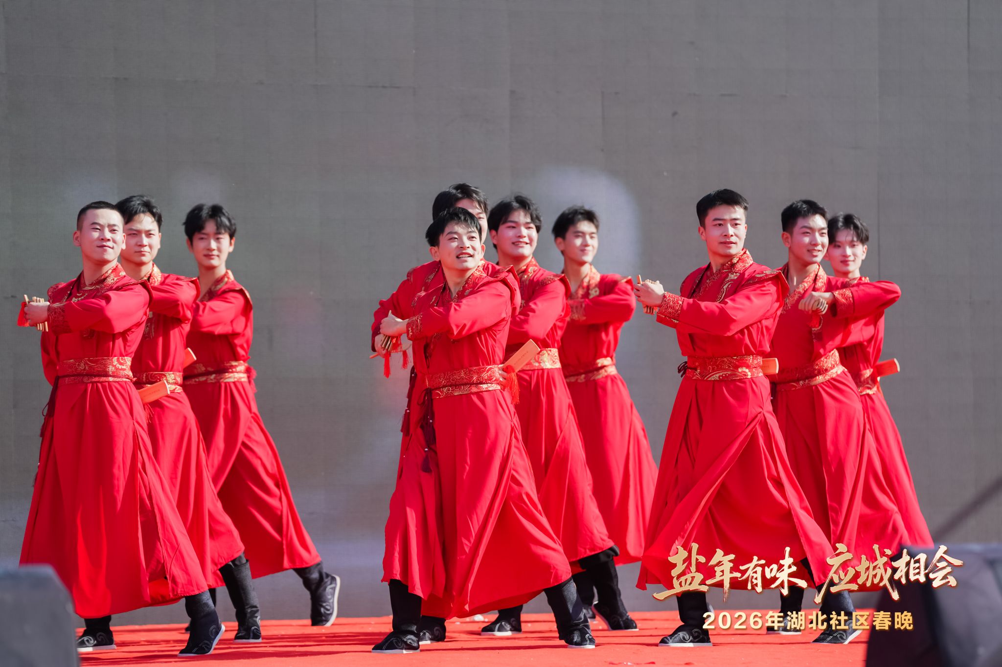 太阳成集团tyc太阳成集团tyc122cc师生带来的快板舞《喜贺新春送福来》,将传统快板的清脆韵律与舞蹈的灵动姿态完美融合,唱词中既融入“马年吉祥”“国泰民安”的新春祈愿,又巧妙呼应应城非遗民俗与乡村美好生活,极具观赏性与感染力。