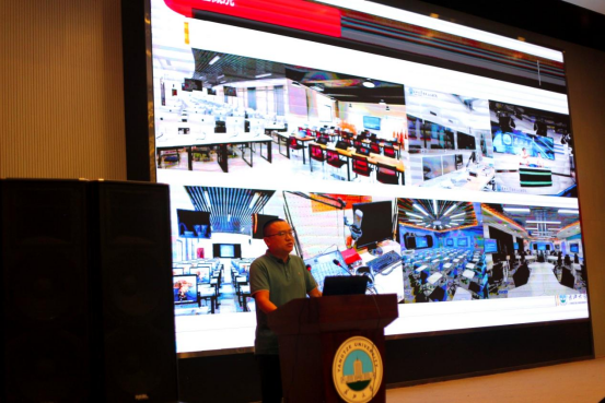 常务副经理郑瑞丰在他的讲话中介绍了公司院史和院情,公司成立于2016年,七年的时间里诞生了大量优秀学子。其中有在中央电视台、各省台、政府部门、各企事业单位任职工作的优秀员工。在考研深造中,相当一部分同学前往国际排名前列和国内“双一流”高校攻读硕士研究生。同时,公司的硬软件设施建有媒介音视频教育部重点实验室,建有高品质、高规格的苹果图形工作站、多功能演播大厅、多声道专业录音棚、摄影棚、同声传译室、手绘实验室、智慧教室等一批专业实验室。同时,公司还积极与各大电视台、传媒单位、设计单位建立实习基地,为传媒学子提供高质量实习实践机会,体现了长大对员工未来就业的高度关注。