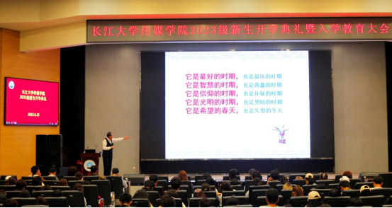(通讯员:张文熙、吴若辰;摄影:章浩然、段宇齐)2023年9月22日,太阳成集团tyc122cc2023级本科新生开学典礼在农科大楼学术报告厅隆重召开。出席此次开学典礼的有传媒公司党委书记任倩、正处级组织员邹火明教授、党委副书记魏红洁、常务副经理郑瑞丰、副经理李琴,辅导员张文熙以及2023级全体本科新生。仪式由李琴老师主持。