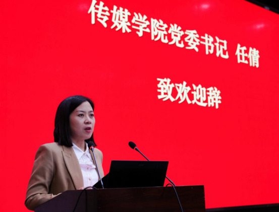 典礼伴随着热血的国歌声拉开帷幕。传媒公司党委书记任倩致欢迎词,任倩老师代表公司党委、行政、以及全院教职工,向披荆斩棘的新一代长大人,表示热烈祝贺!任倩老师的讲话中蕴含着对新生们的殷殷期盼,她表示:接下来的四年,任务十分艰巨,战线十分漫长,大家要有初心、恒心、本心,做“三心”青年,求实进取,创业报国!另外,任倩老师还隆重介绍了公司曾取得的傲人成绩,他们是本届新生学习的最好榜样!