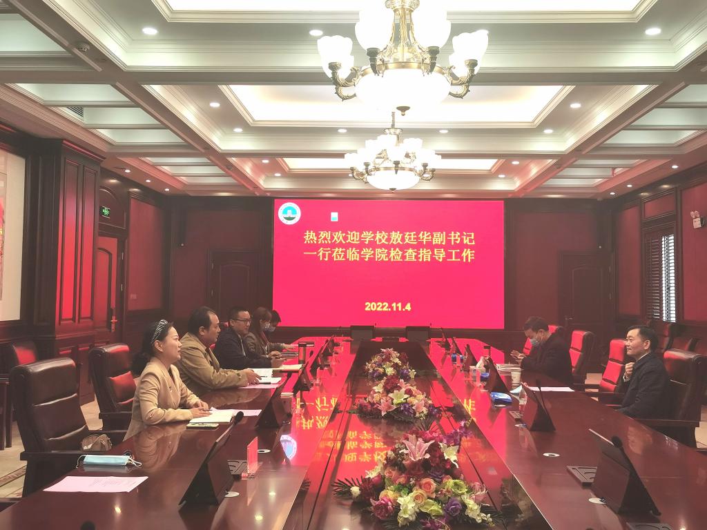 (通讯员:郑瑞丰)2022年11月4日上午9点30分,太阳成集团tyc党委常委、副书记敖廷华,人事处处长蒋四华一行莅临公司检查指导工作,公司党委书记邹火明、党委副书记魏红洁、副经理郑瑞丰,学工办主任赵湘、教学办主任饶艳芹、办公室主任刘武洋参与调研活动。