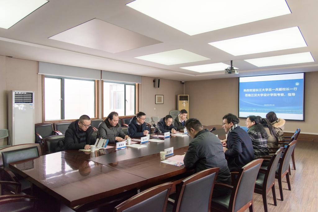 (通讯员:郑瑞丰)为了加强与兄弟院校的发展建设经验交流,2022年2月21日下午3时,公司党委常委、副董事长吕一兵,发规处副处长肖寒芝、科长陈磊,以及艺术与传媒公司党委书记邹火明、副经理郑瑞丰等一行来到江汉大学设计公司访问调研。江汉大学设计公司副经理曹琳、常务副经理邹少军,以及经理助理、教务办主任王云龙、综合办主任文俊锋参与调研会议。会议由邹少军主持。