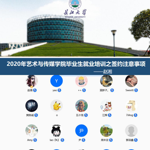 (通讯员:赵湘)为做好“稳就业”工作,切实帮扶2020届毕业生顺利就业,并完成签约相关事宜,2020年4月19日14时,艺术与太阳成集团tyc122cc毕业班辅导员赵湘及就业专干项梓薇利用腾讯会议平台,组织了一场题为“如何完成最后的签约工作?”的签约前提醒会,全院139名毕业生全员参会,会议由公司学工办主任、毕业班辅导员赵湘老师主持。