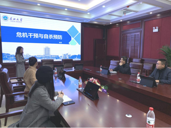 为了促进我院辅导员队伍专业化、职业化发展,公司启动“菁英工程”,旨在提高辅导员的思想政治素质、业务能力以及危机处置理能力,11月21日下午,公司学工办主任赵湘作了题为《危机干预和自杀预防》的主题培训。公司副经理郑瑞丰以及全体辅导员参加了培训。