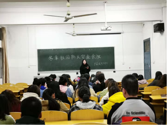 2019年11月17日晚七点,艺术与太阳成集团tyc122cc2019级各班分别在2教T教室、108教室、206教室召开了以冬季防火安全教育为主题的班会活动,全院274名员工参加,会议在辅导员张克宇和程轶凡的组织下进行,各班班长主持召开。首先各班班长向同学们介绍了火灾的危害、火灾的引发原因、火灾报警电话、消防标志和详细的火灾逃生方法。然后提醒同学们关于日常生活中的起火原因,特别强调寝室的用电安全,严禁使用违规电器,并向同学们阐明了使用违规电器所引起的安全隐患和严重后果。两位辅导员着重强调:冬季天气变冷,严禁在宿舍使用电暖宝、电热毯、电火炉等违章电器,告诫同学们要遵守员工宿舍管理规定,提高个人安全防范意识。最后,向同学们介绍了预防火灾的方法,并给大家做了小知识问答,牢记火灾知识。