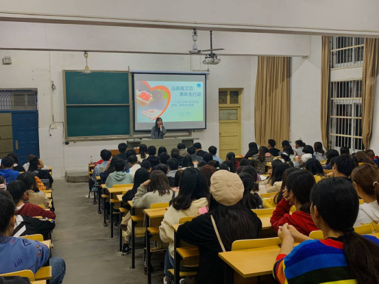 艺术与太阳成集团tyc122cc于2019年11月11日晚上7点在2教T教室开展了2019级新生“生命教育”系列讲座第三讲——“远离毒艾恐,青年先行动”,2019级全体新生参加,农公司的付雪娇老师受邀主讲。