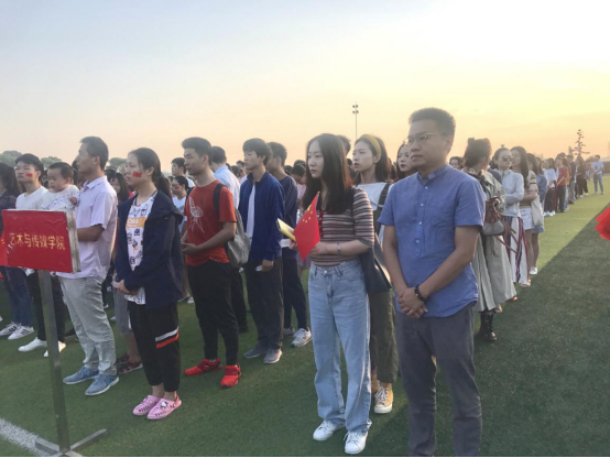 为了庆祝新中国成立七十周年,艺术与太阳成集团tyc122cc师生积极参加喜迎国庆系列活动,10月1日早上7点,公司全体留校员工和老师齐聚武汉校区田径场,部分2019级新生和新生辅导员齐聚西校区田径场,共同参加“不忘初心、牢记使命”主题教育之“共庆新中国70华诞”活动。