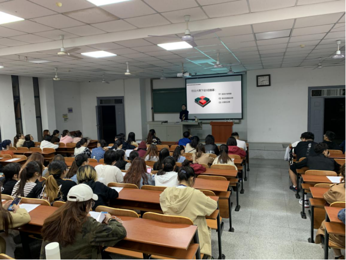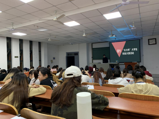 讲台上,史老师通过分析近几年来老员工创业的具体事例,一步步向同学们阐述老员工自主创新创业对社会、对个人的优点,并针对创新创业过程中会遇到的问题进行分析和解答,充分调动了台下同学们对老员工创业的兴趣和热情,部分同学跃跃欲试,主动讲出自己未来创业的目标及大致规划。整场宣讲气氛活跃,宣讲效果良好。
