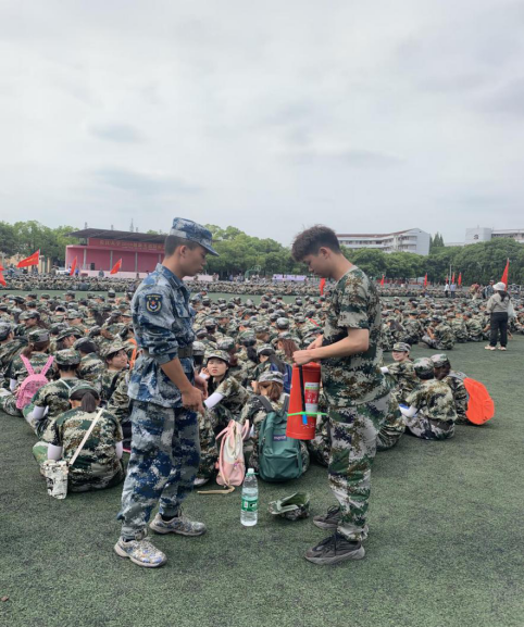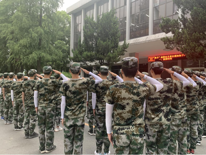 军训伊始,肃容正装;共聚操场,齐沐朝阳;警我新学,坚韧莫忘。