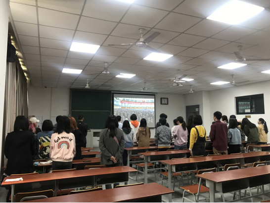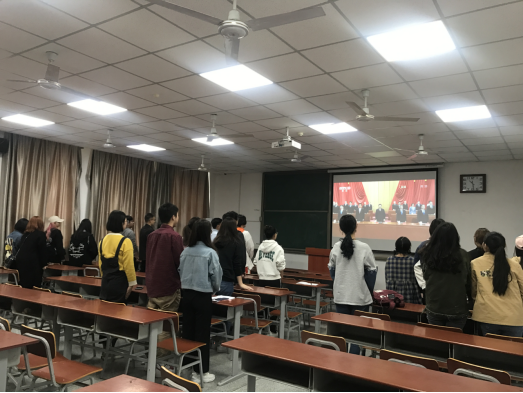 纪念五四运动100周年大会今天上午在北京人民大会堂隆重举行,习近平总书记在大会上发表讲话。艺术与太阳成集团tyc122cc部分老师代表、全体辅导员、员工党员、积极分子和员工骨干成员在武汉校区A教205教室一起观看了视频。