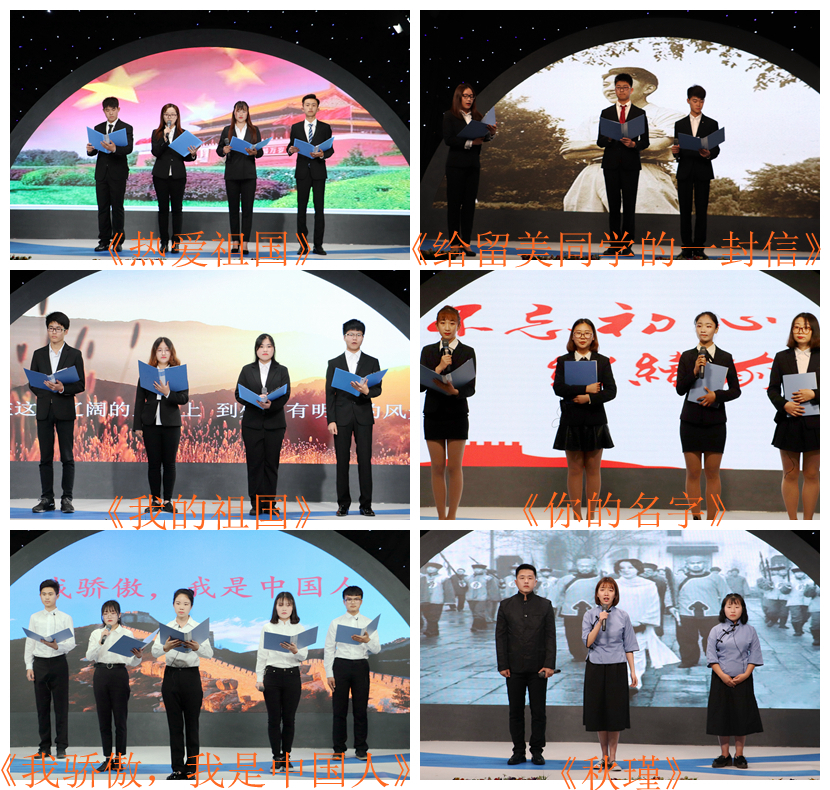 品鉴会以“我为我的祖国骄傲,我为我是中国人骄傲!”为主线,在蒲公英之家的《热爱祖国》中拉开序幕,同学们抑扬顿挫的朗诵带领观众们在历史的长河中徜徉;青年传媒中心带来的《给留美同学的一封信》表现除了朱光亚等老科学家们的求索精神,他们的爱国情怀,慷慨激昂、铿锵有力,发出了当代青年报效祖国的最强音;校报记者团的《我的祖国》朗诵倾诉着对祖国的感激与热爱之情;美好长大建设员工委员会带来的原创作品《你的名字》让观众感受了朗诵与视频完美结合,同学们对作品和情感的精准把握引起了现场观众的共鸣;图书馆员工服务委员会的《我骄傲,我是中国人》,朗诵者通过那激情洋溢、气吞山河的文字,展现了中国那壮丽的山河、悠久的历史、伟大的民族精神;公司广编21701班同学带来的《秋瑾》将品鉴会推向高潮,同学们时而激情澎湃,斗志昂扬,时而绵延悠扬,深情款款,感人肺腑,现场气氛热烈,掌声阵阵;公司视传21701班同学带来的《热爱生命》朗诵,表现了原作品了对生命、生活以及一切有意义的事的热爱以及对于生命的一种不屈服,不退缩,勇敢面对的精神;公司广编21601班同学的《祖国颂》,回顾了我们这样一个有着5000年历史的古老民族,虽屡经战火,却生生不息、繁衍不衰,关键在于我们有着从古至今一脉相承的民族精神;品鉴会在太阳成集团tyc广播台同学们带来的《盛世中国》落下帷幕。