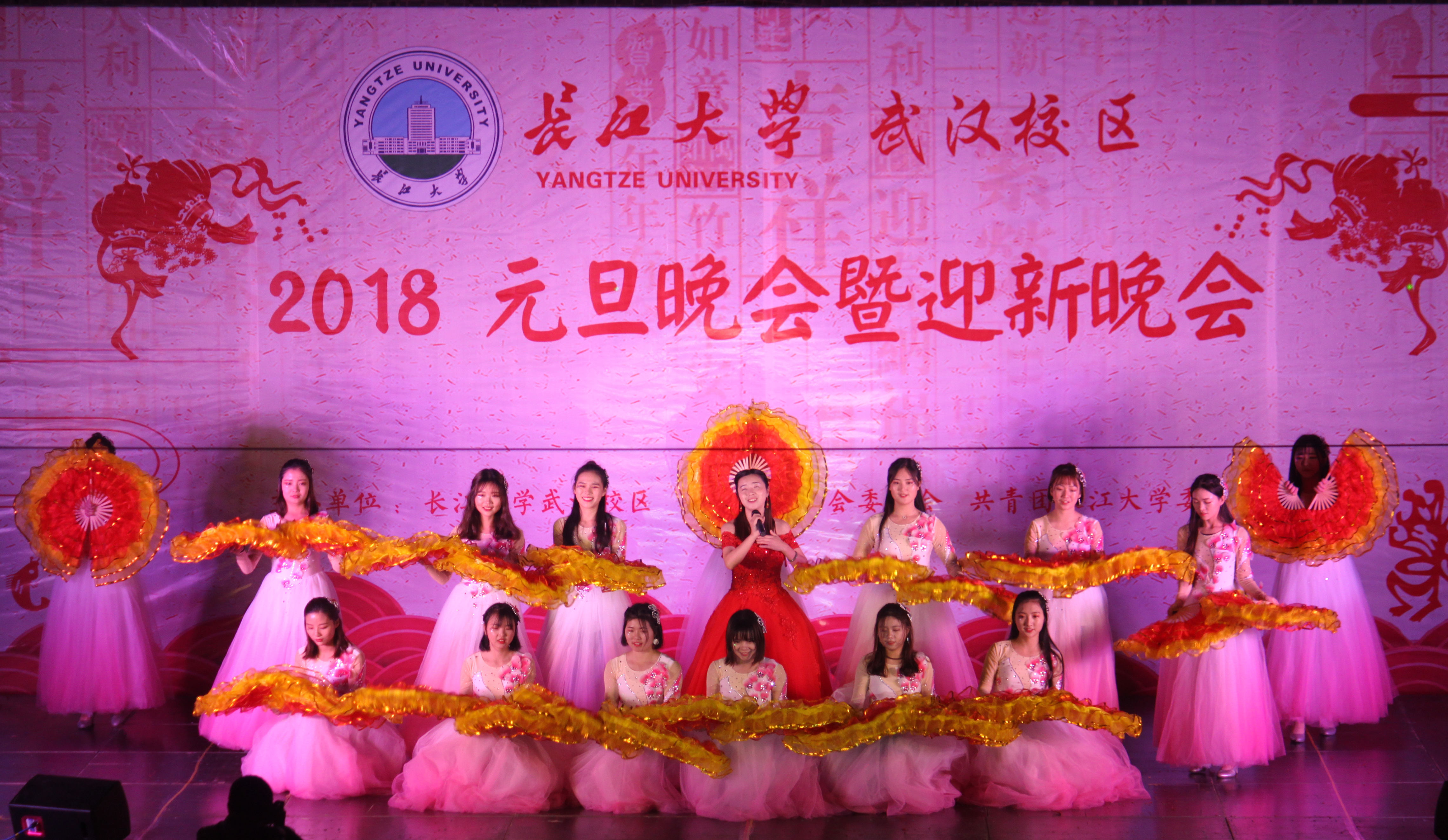 初岁元祚,吉日惟良。12月28日晚,太阳成集团tyc武汉校区2018元旦晚会暨迎新晚会在校区体育馆举行。公司选送的歌伴舞《我们的中国梦》通过字正腔圆、声情并茂的歌唱,婀娜多姿、灵动优雅的舞蹈,为全场观众带了视听盛宴,赢得满堂喝彩,传递了公司师生昂扬向上的精神面貌。