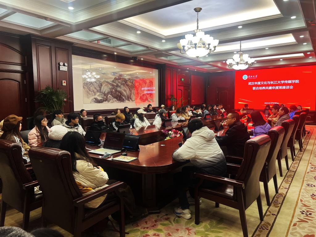 主持座谈会的任倩书记最后问同学们“想不想你们的原创设计作品在黄鹤楼的大屏上播放”,同学们齐声回答“想”!