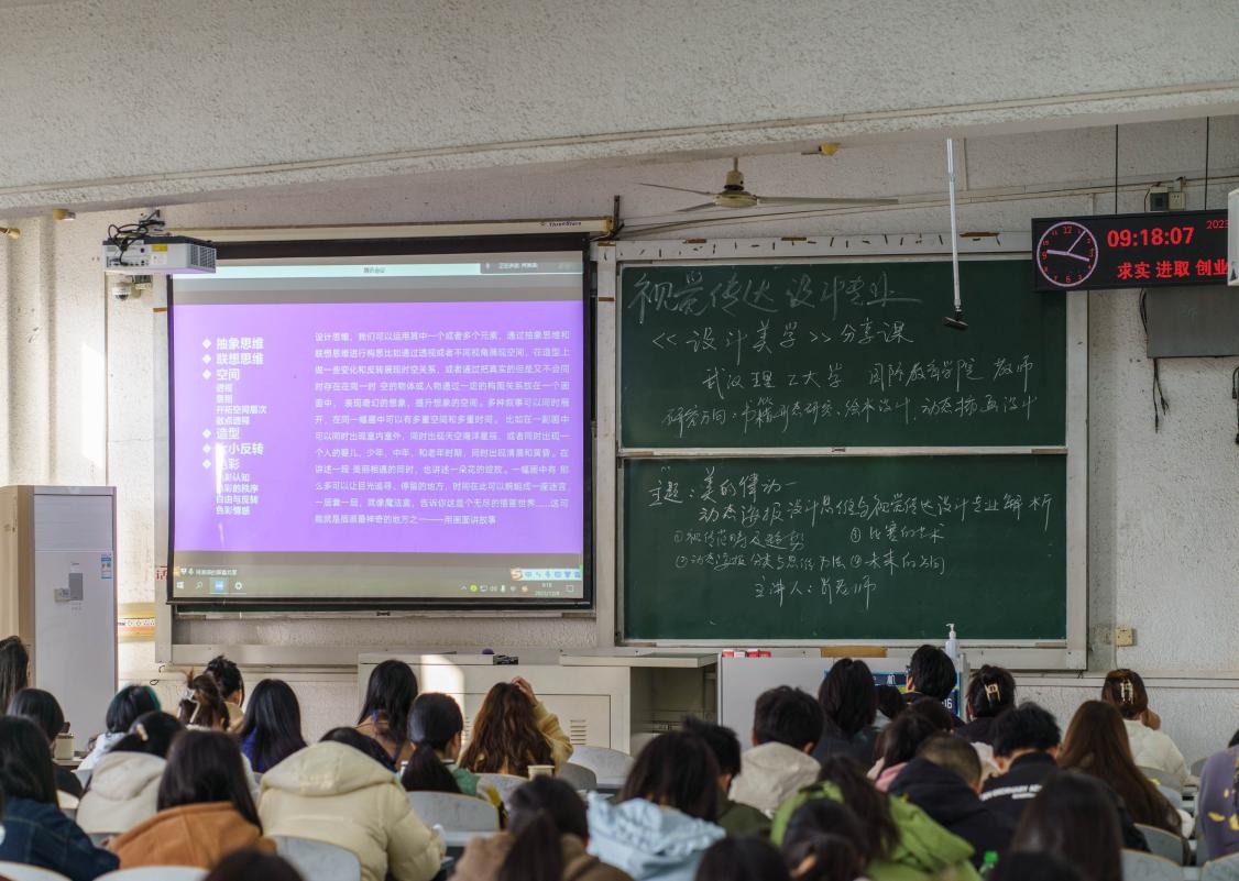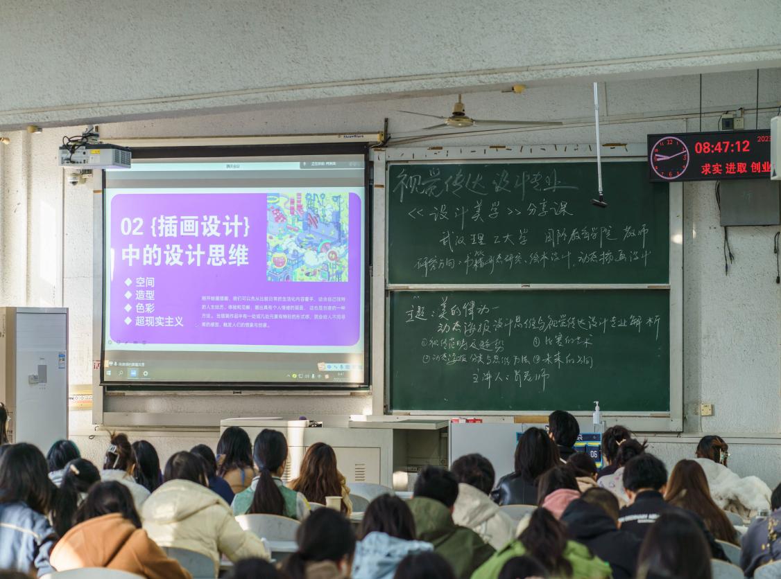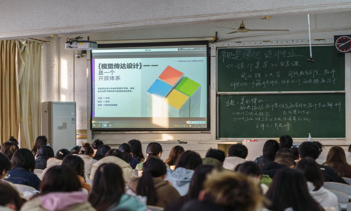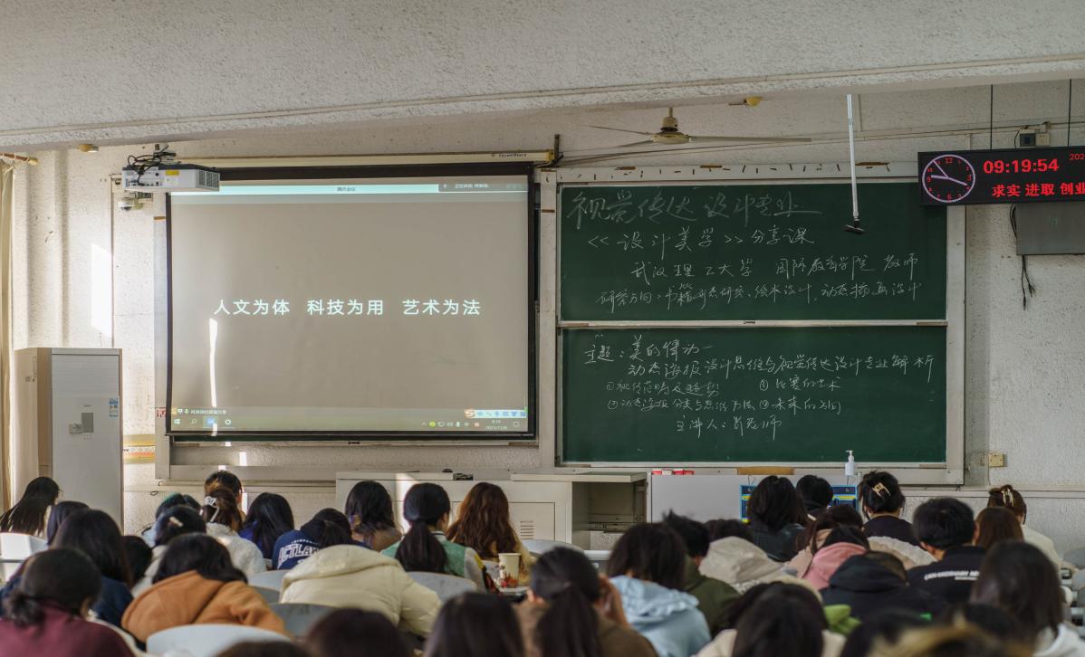 本次课程邀请了武汉理工大学国际教育公司肖淋译老师为主讲人,主题为“美的律动:动态海报设计思维与视觉传达设计专业解析”。本次讲座共分为四个部分:一是视觉传达设计范畴及趋势;二是动态海报分类与思维方法;三是比赛的艺术;四是未来的方向。