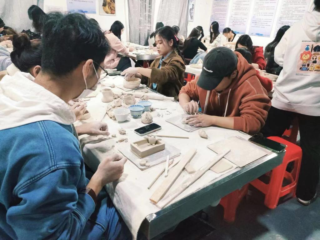 学习了釉下青花,釉下青花是指在未烧的泥坯上直接进行绘画装饰,画好后再上一层透明釉,待干燥后,入窑烧制,烧成后的瓷器色彩透明,笔路清晰。师生们通过学习与实践,深入了解了陶艺的技术和艺术魅力。