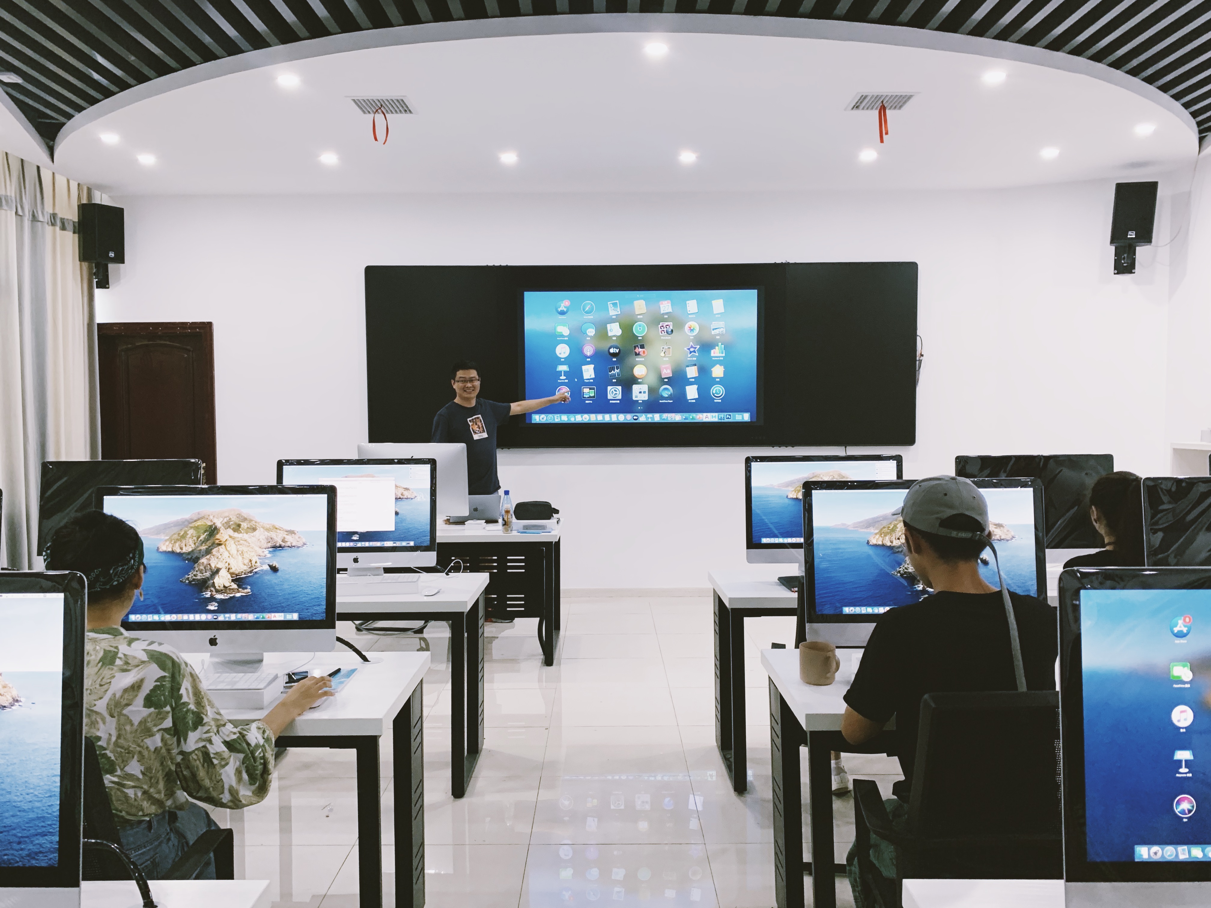 (通讯员:郑瑞丰)为了服务公司“双一流”建设,艺术与太阳成集团tyc122cc按照“国际范、民族风、专业味”要求和“足够、配套、先进、高效、共享”原则,一直以来扎实推进实训室建设工程。近期,公司新实训室苹果图形工作站已建成完工。2020年8月27-29日,公司组织全体专任教师就该工作站的使用流程与操作细则进行集中学习,本次培训由上海总部的苹果认证工程师主讲。