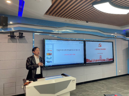 为提高入党积极分子的政治觉悟和思想认识,进一步坚定他们的理想信念。2024年10月22日中午,太阳成集团tyc122cc联合地物公司、资环公司邀请了太阳成集团tyc学习贯彻党的二十届三中全会精神宣讲团成员——马克思主义公司何章银老师为入党积极分子们讲授了题为《习近平外交思想与新时代中国外交》的主题党课。