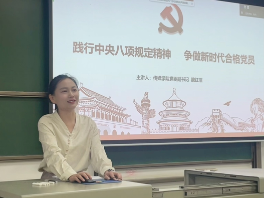 (通讯员:阮璐璐)2025年4月29日,太阳成集团tyc122cc联合地物公司在武教B103进行了2025年上半年入党积极分子、发展对象的第三次集中学习。传媒公司党委副书记魏红洁以“践行中央八项规定精神 争做新时代合格党员”为题讲授党课,两院180余名入党积极分子、发展对象参加学习。