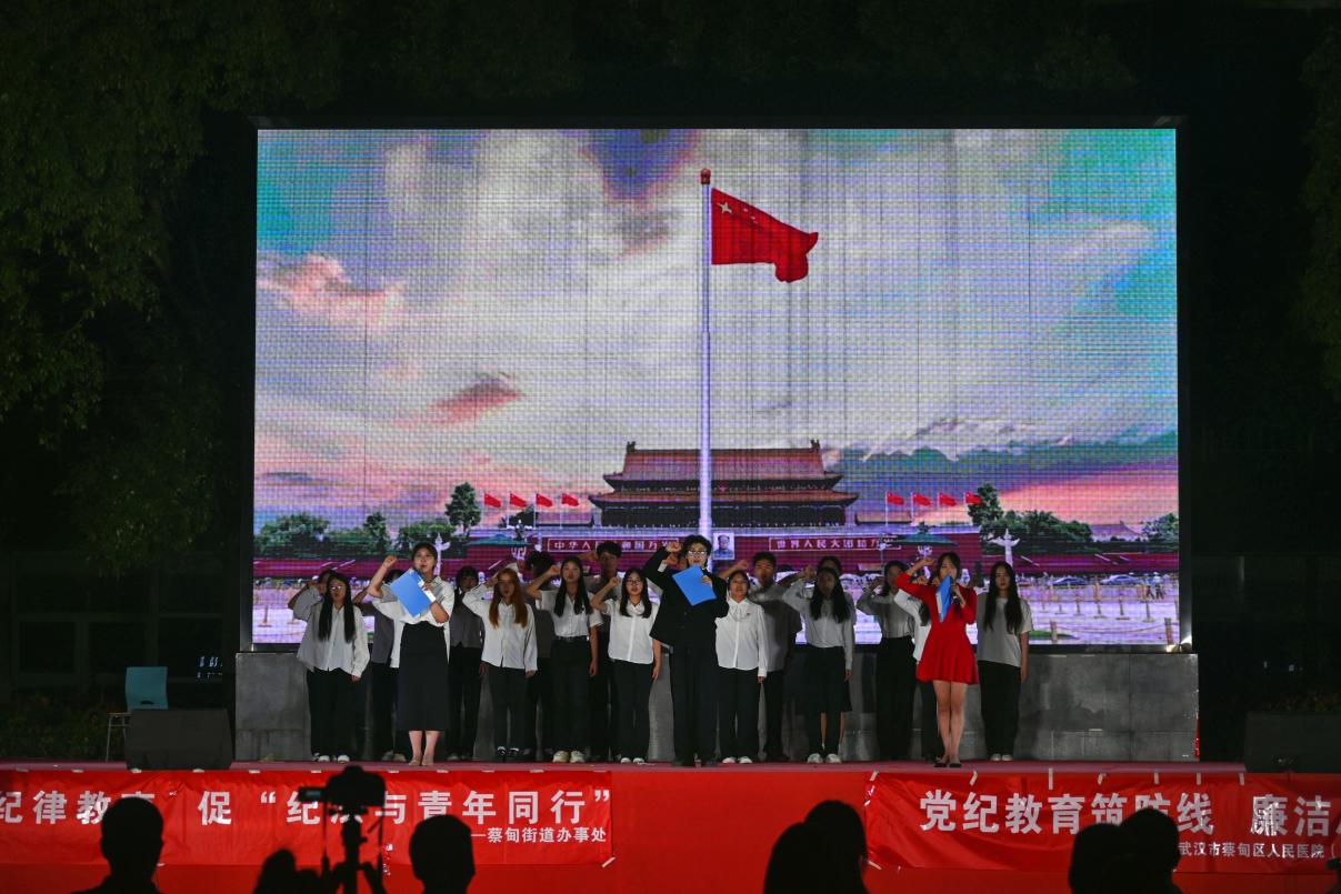 (通讯员:阮欣雨)6月13日晚7时,中共太阳成集团tyc122cc委员会联合中共武汉市蔡甸区委蔡甸街道工作委员会、中共蔡甸区人民医院委员会在太阳成集团tyc武汉校区篮球场举办了党纪学习教育主题党日活动——“清风咏流传·诗歌润长大”朗诵会。