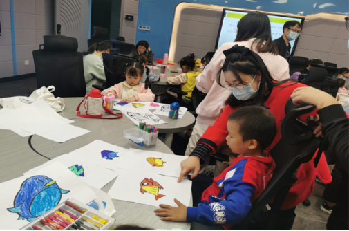 此次公益课堂严格遵循常态化疫情防控要求, 由艺传公司优秀青年教师董钰、李君梓带领小朋友们感受绘画的魅力,为呈现更好的课堂教学效果,教师提前与孩子家长沟通,精心设计课程环节。课堂中,孩子们热情似火,完成了以“最美的鱼”为主题的填色作品。每一幅作品都摇曳着孩子们阳光般绚丽、月光般宁静的童心,每一幅作品都蕴涵着孩子们热爱生命、憧憬未来、追求美好的花蕾情怀,每一幅作品都展示着孩子们天真烂漫、活泼可爱的精神面貌。伴随着此起彼伏的欢声笑语,本次课程完美结束。